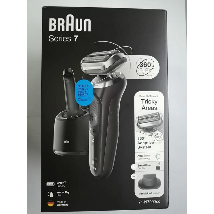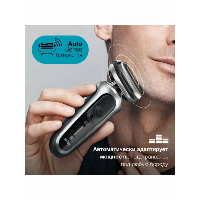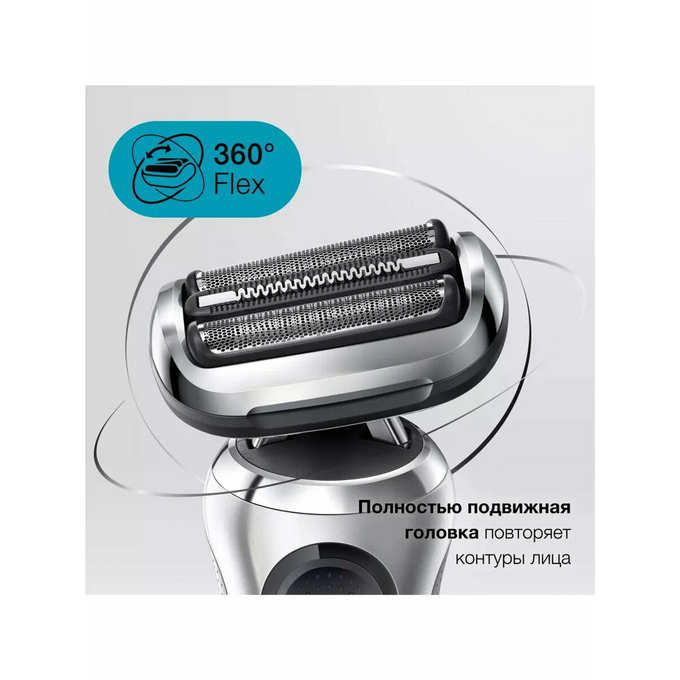 Режущий блок 73S; Индикация включения; Промывка ножей под водой; Повторение контуров лица; Использование в душе; Прорезиненное покрытие корпуса; Светодиодный дисплей; Насадок - 1 шт.