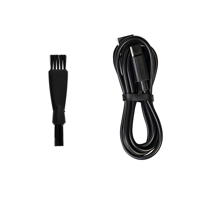 В комплекте: бритва, щетка для очистки, защитная крышка, USB-кабель, руководство по эксплуатации