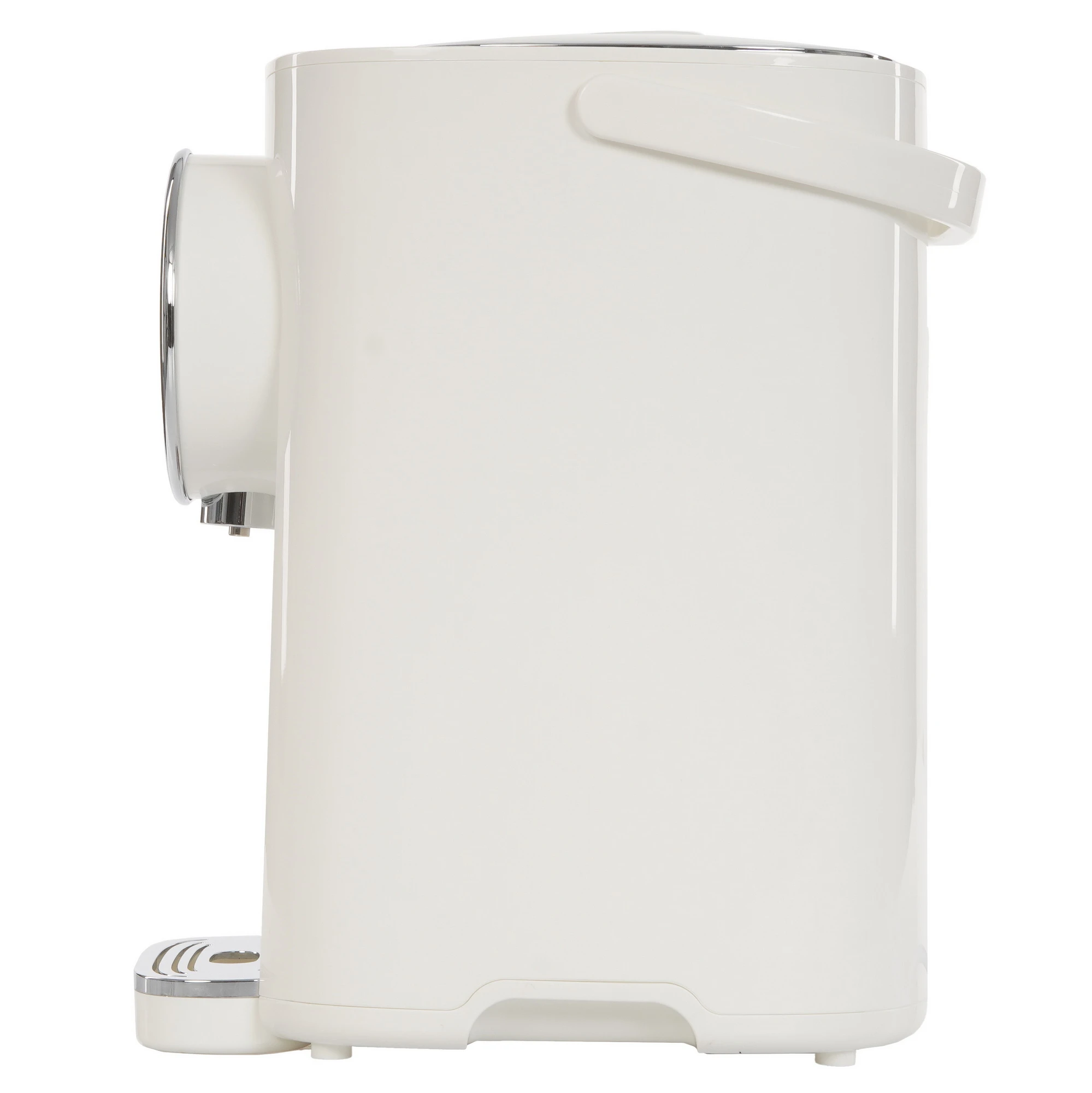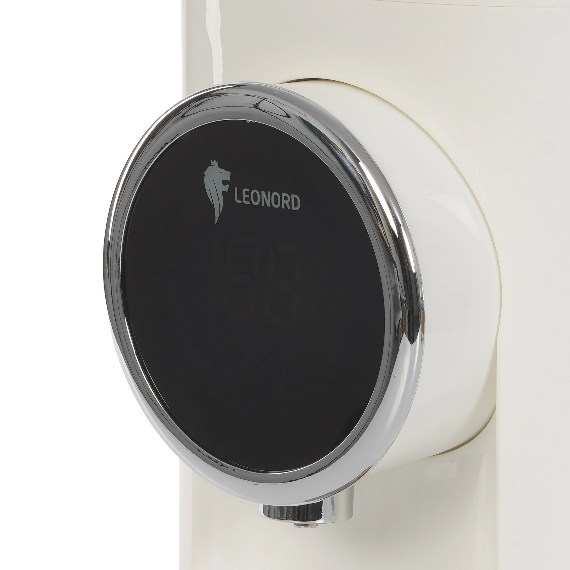 Термопот Leonord LE-1542 в корпусе белого цвета оборудован 3 режимами работы, в том числе для удаления хлора из воды. Кнопочная панель управления позволяет регулировать температуру нагрева от 45 C до 95 C. Функция поддержания температуры предупреждает остывание жидкости. Термопот Leonord LE-1542 имеет дисплей, который отображает выбранные параметры работы. Блокировка ограничивает возможность включения прибора при нехватке воды в 5-литровом резервуаре. Съемная крышка упрощает очистку и наполнение емкости. Ручка служит для транспортировки модели. Влага поступает в съемный поддон.