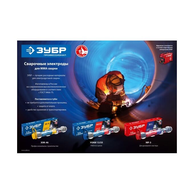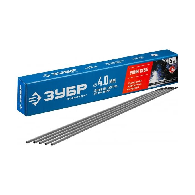 Сварочный электрод ЗУБР УОНИ 13/55 40025-4.0 применяется для сварки ответственных конструкций из углеродистых сталей на ММА инверторах на постоянных токах обратной полярности.