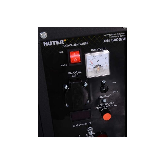 Электрогенератор инверторный Huter DN 5000iW, с функцией сварки мощностью 8 л.с. способен выполнять сварочные работы в ручном режиме ММА штучными электродами. Многофункциональное устройство может использоваться на природе, в частных домах и на дачных участках, не имеющих поблизости сетей электроснабжения, а также на строительных площадках. Запуск осуществляется с помощью ручного стартера. На панели управления имеется вольтметр и цифровой дисплей для контроля сварочного тока.