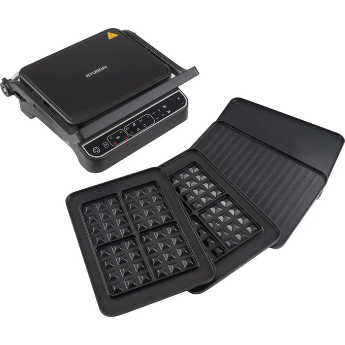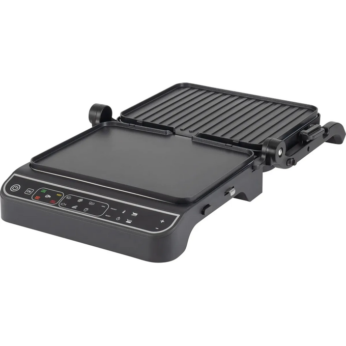 Термощуп обеспечивает автоматический контроль температуры внутри стейка, тем самым контролирует степень прожарки. Панели для приготовления вафель в комплекте. 10 автоматических программ для приготовления, а так же ручной режим, для оптимальных настроек для каждого типа продуктов. Открытие на 180°, плоская панель и раздельная регулировка температуры панелей, позволяет использовать гриль как плиту.
