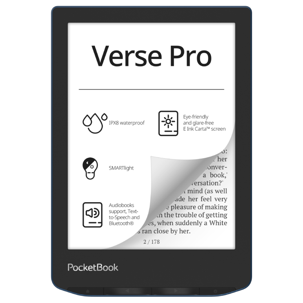 PocketBook Verse Pro соответствует стандарту IPX8, позволяющему погружать его в пресную воду на глубину до 2 метров и на срок до 60 минут.