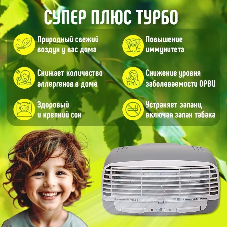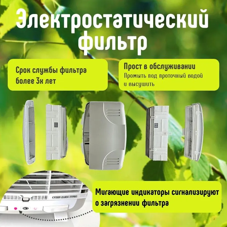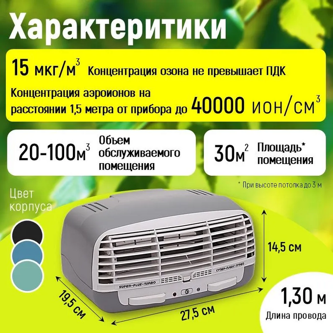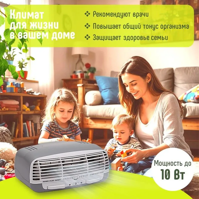 Электронный воздухоочиститель Супер-плюс-Турбо - специализированное климатическое устройство, которое работает по принципу коронного разряда, где под действием неоднородного электрического поля воздух двигается через прибор, создавая "ионный ветер". Аппарат фильтрует загрязняющие частицы размером от 0,01 до 100 мкм - это пыль, аллергены, шерсть от животных и мн. др.