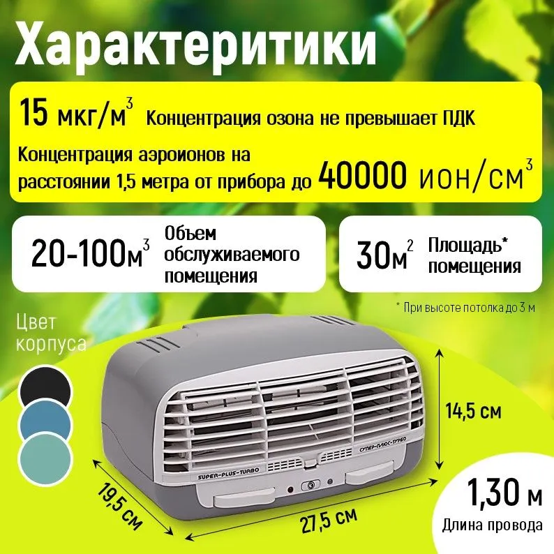 -Ионизатор воздуха способен очистить воздух в помещении с объемом в 100 м3 всего за 2 часа;