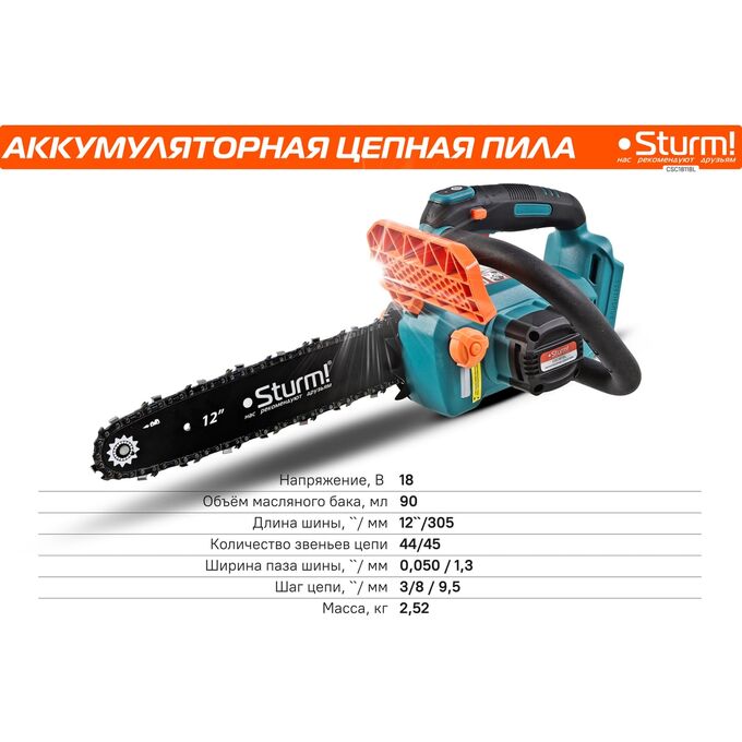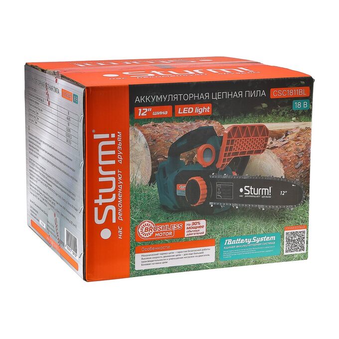 Пила цепная аккумуляторная б/щ Sturm!, CSC1811BL 18В, 1BatterySystem, шина 30 см, без АКБ и ЗУ
