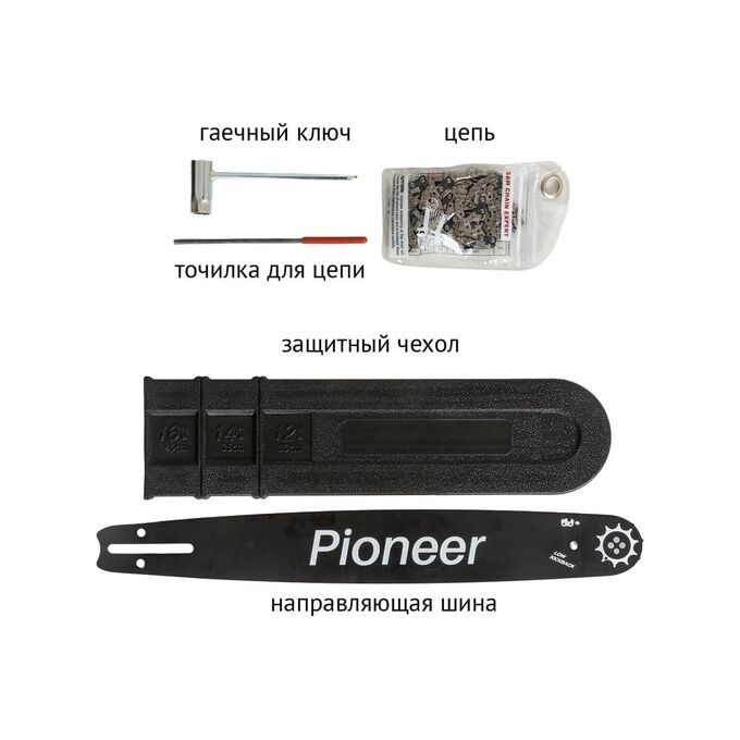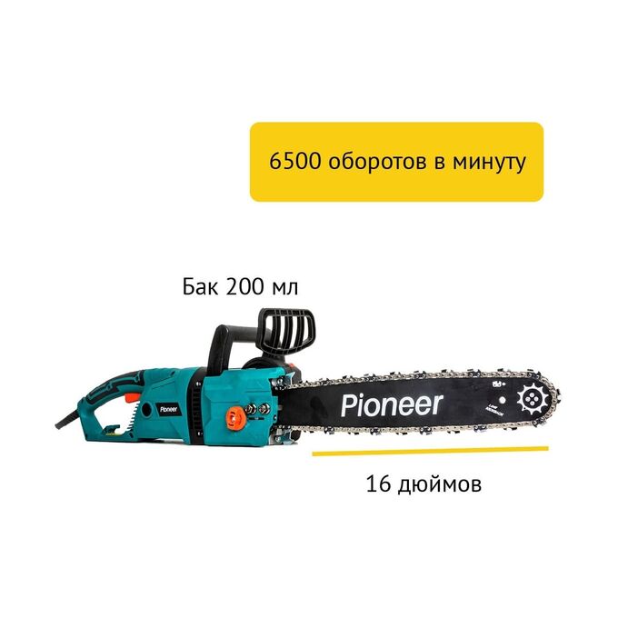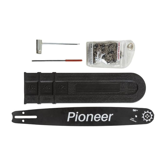 Цепная пила Pioneer ECS-2016-06V предназначена для работы с древесным материалом и деревом, а именно для распиловки бревен и обрезки деревьев.