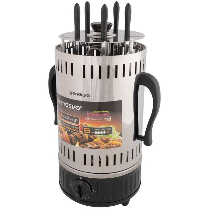Электрошашлычница ENDEVER Grillmaster 290, серебристый/черный