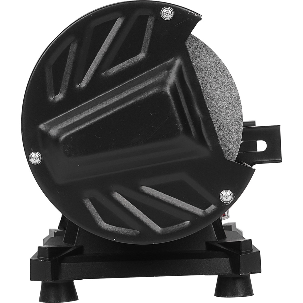 -Точильный станок отличается компактностью, хорошей эргономикой и может надёжно крепиться к рабочему столу, поэтому работать на нём очень удобно.