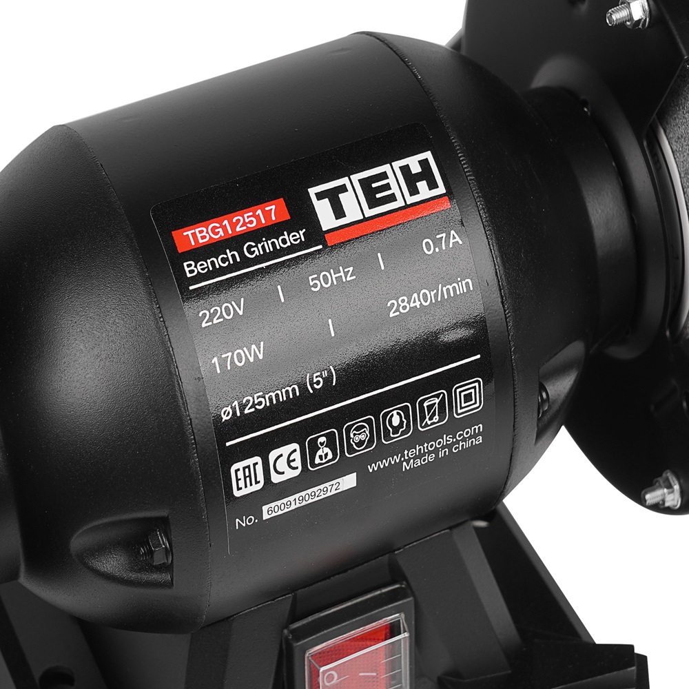 Точильный станок TEH TBG12517 предназначен для сухого шлифования металлических заготовок и затачивания режущего инструмента при помощи вертикально вращающихся заточных дисков.