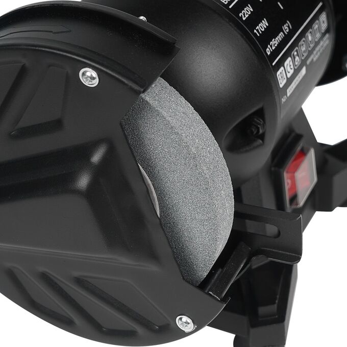 -Оснащен двумя абразивными кругами диаметром 125 мм и толщиной 16 мм.