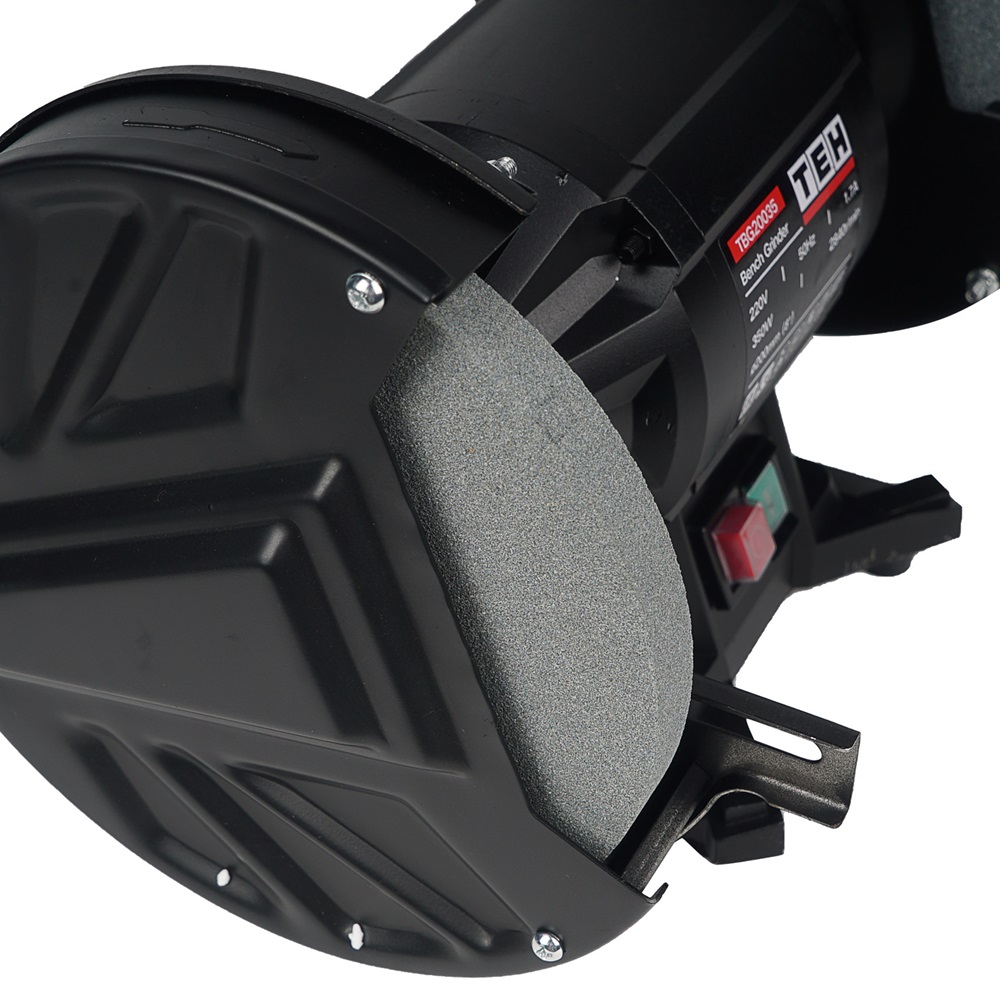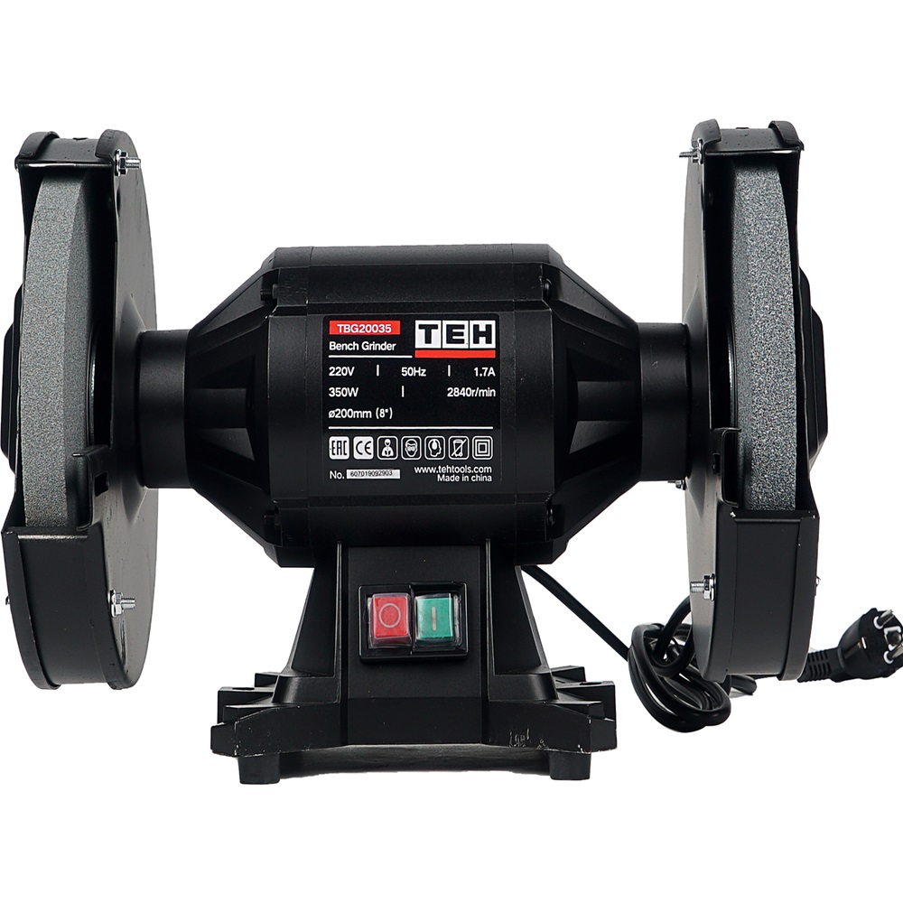 Точильный станок TEH TBG20035 предназначен для сухого шлифования металлических заготовок и затачивания режущего инструмента при помощи вертикально вращающихся заточных дисков. Он оснащен двумя абразивными кругами диаметром 200 мм и толщиной 20 мм.