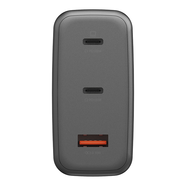 Сетевое зарядное устройство Energea AmpCharge GaN100 с двумя разъемами 2хUSB-C PD 100W/PPS 100W QC 3.0 и одним портом USB-A QC 3.0 30W для одновременной быстрой зарядки нескольких устройств. Блок питания поддерживает протоколы Power Delivery 100 Вт и PPS 100 Вт и позволяет с функцией Fast Charge быстро заряжать флагманские смартфоны не только Apple, но и других производителей (Samsung Galaxy, Huawei и др).