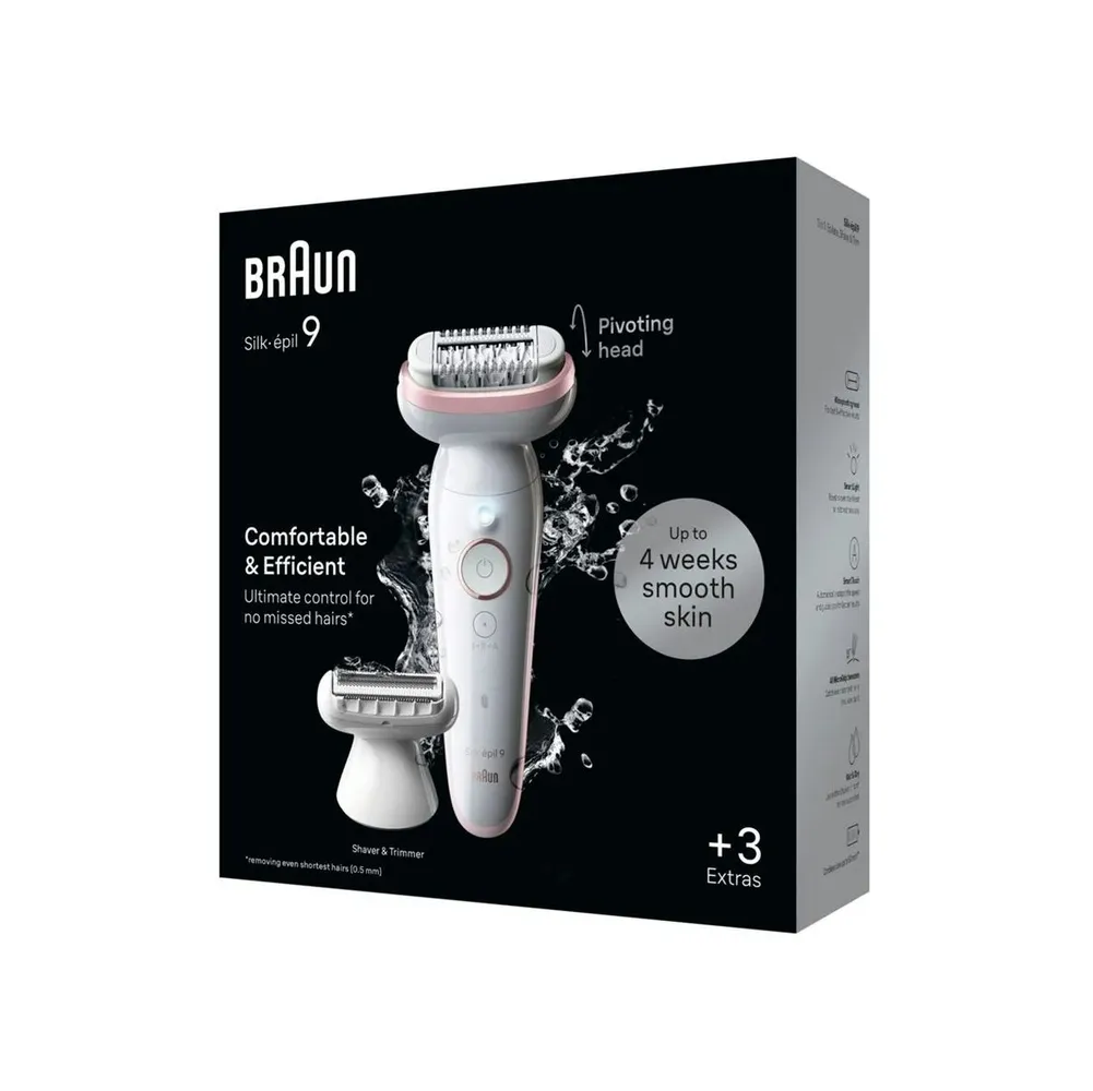 Комплектация: Эпилятор S9, бритвенная насадка, насадка-триммер, щёточка, зарядное устройство, косметичка