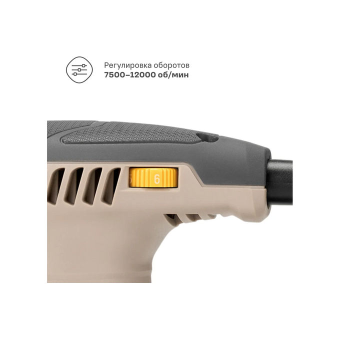 Эксцентриковая шлифмашина справится с работами по дереву, металлу, пластику и окрашенным поверхностям, скорость вращения регулируется под задачу. Пылезащищенный выключатель можно зафиксировать, это удобно при длительной работе с инструментом. Резиновая «юбка» защищает заготовку от царапин — снижает обороты в начале шлифования.