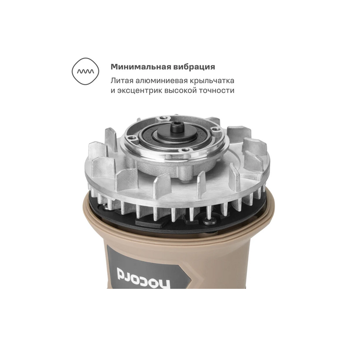 Компактный размер и небольшая масса машины позволяют работать одной рукой, а эксцентрик высокой точности изготовления и литая алюминиевая крыльчатка защищают здоровье пользователя от вибраций. Рукоять покрыта резиной для надёжного хвата.
