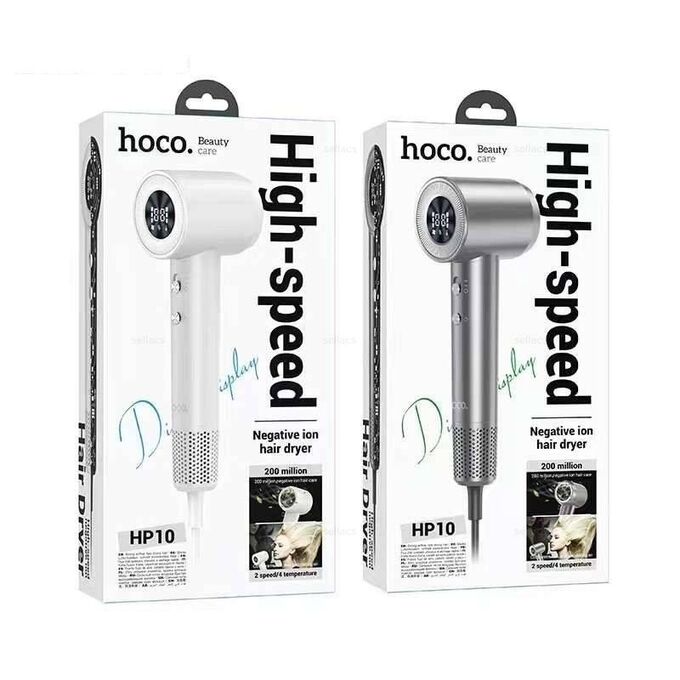 Фен HOCO HP10 (белый) EU, высокоскоростной, с дисплеем, 1600W, ионизация, 2 скорости, 4 режима температуры