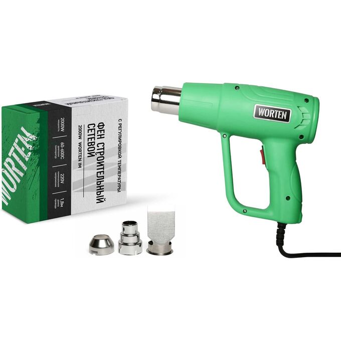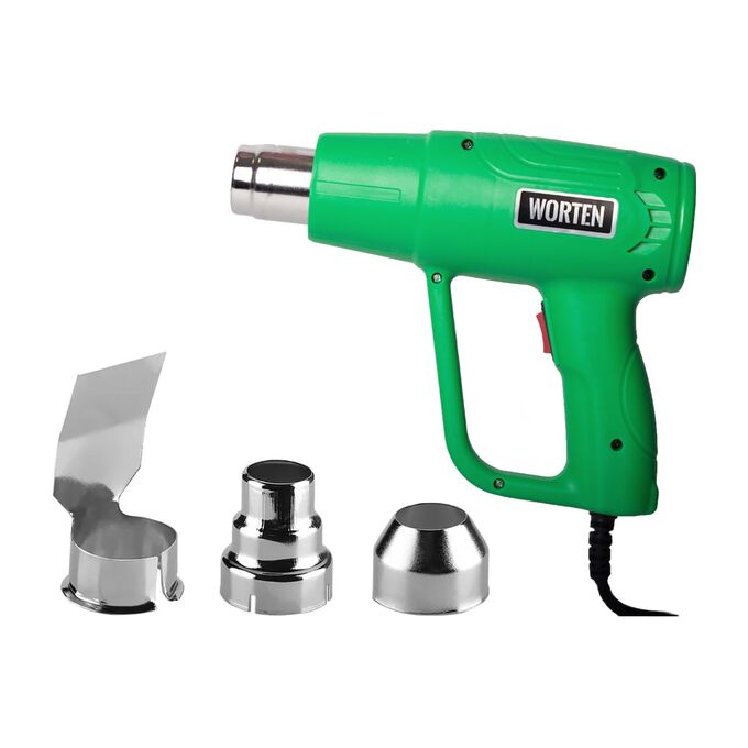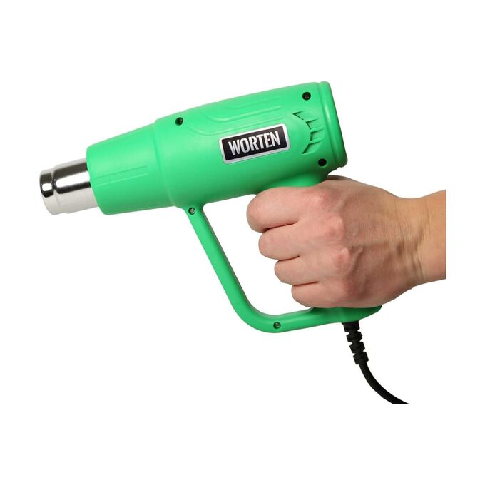 Термопистолет WORTEN отличается компактными размерами и малым весом. Пригодится для нагрева поверхности с целью удаления лакокрасочных покрытий, высушивания или оттаивания сантехнических элементов.