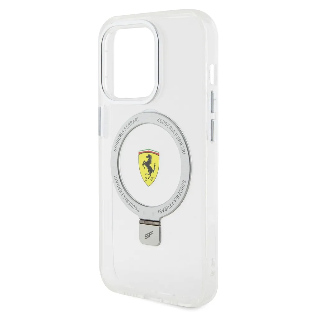 Ferrari для iPhone 15 Pro чехол PC/TPU + Ring stand Hard Silver (MagSafe)