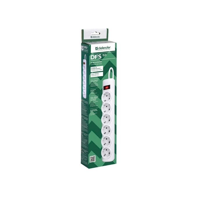Сетевой фильтр Defender DFS 153 3 м, белый, 6 розеток
