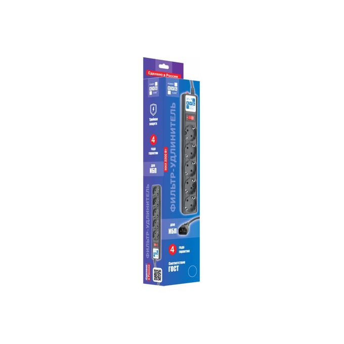 Фильтр-удлинитель Power Cube 1,9 м д/подключение к UPS (C14), 5 розеток (черный) 10А/2,2кВт, SPG5-В2 предназначен для подключения электроприборов различного назначения к электрической сети переменного тока, напряжением до 250В номинальной частоты 50Гц. Материал корпуса: негорючий пластик. Тип вилки С14.