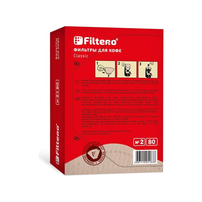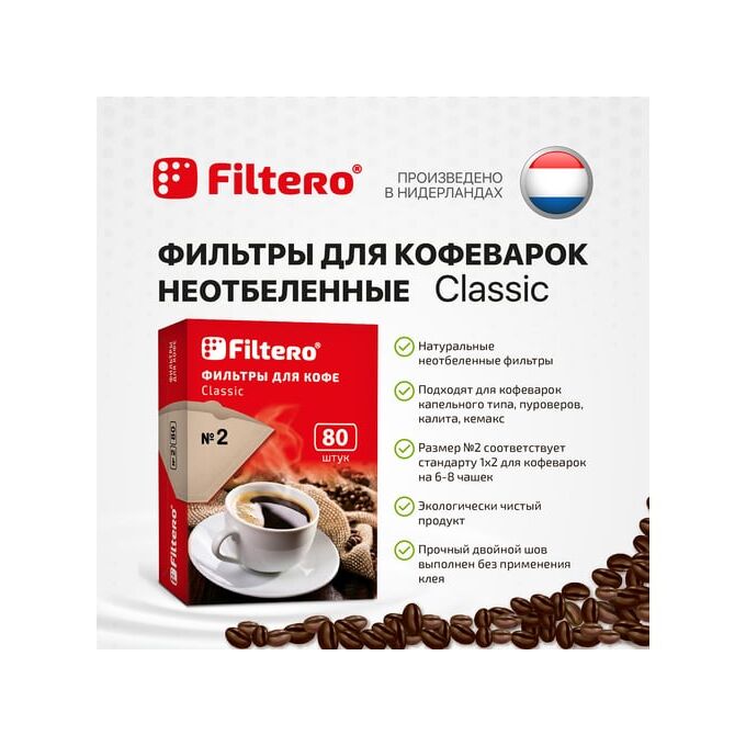 Фильтры для кофе Filtero №2 бумажные, 80шт, (№2/80) коричневый