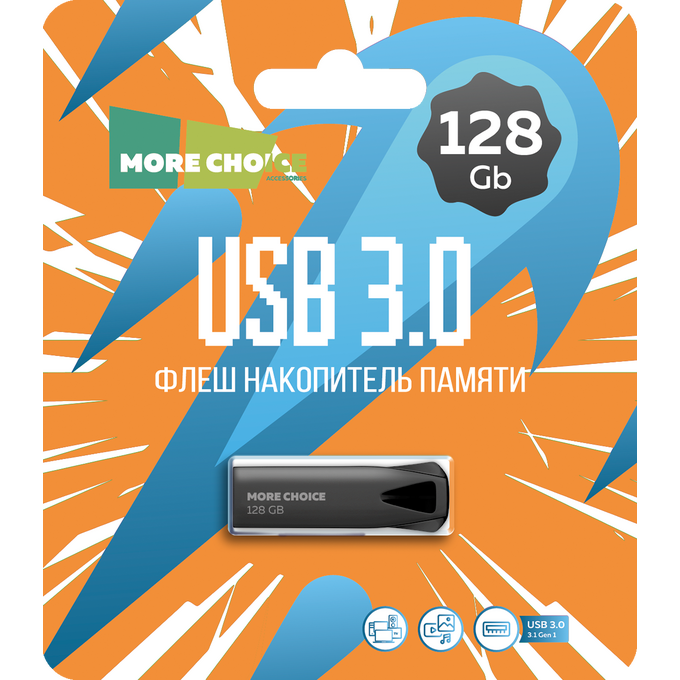 Флеш накопитель памяти USB 128GB 3.0 More Choice MF128m металл (Black)