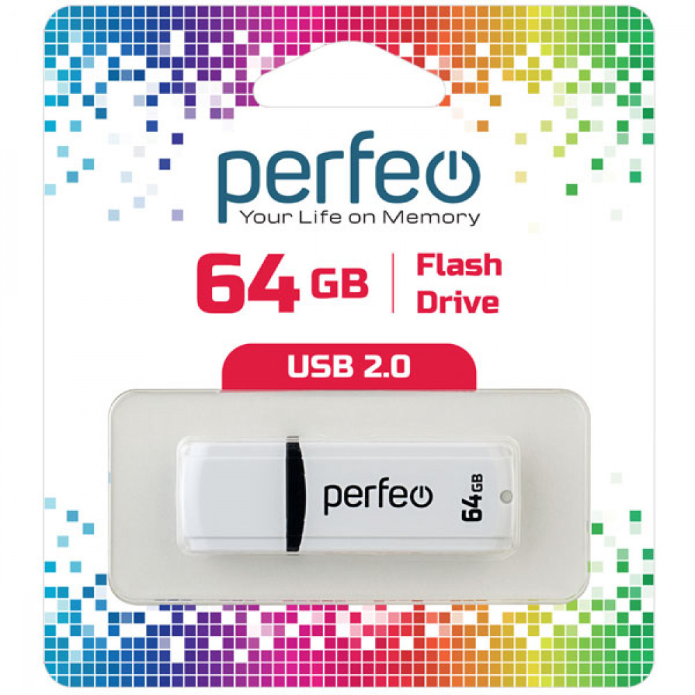 Флешка Perfeo USB 64GB C02 / Белая, (Арт. PF-C02W064)