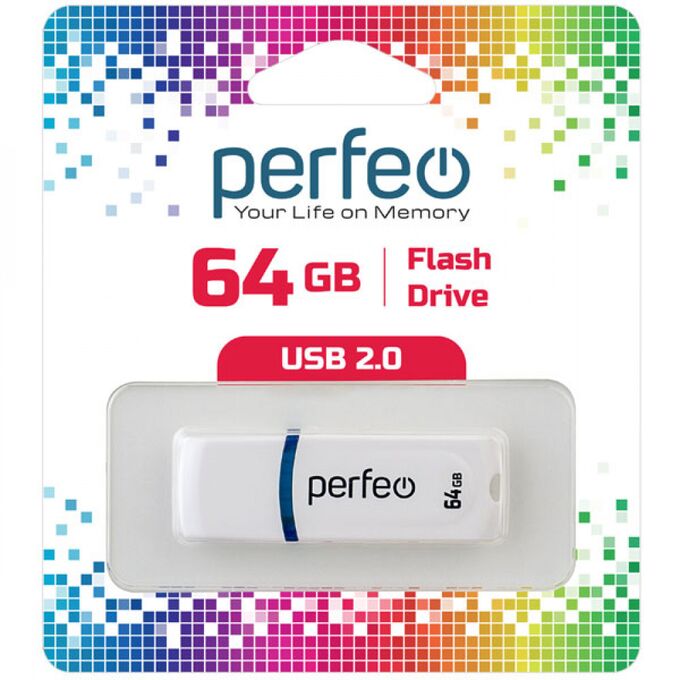 Флешка Perfeo USB 64GB C09 / Белая, (Арт. PF-C09W064)