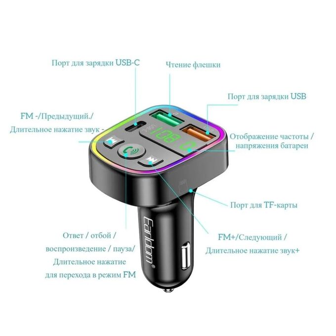 ФМ модулятор Earldom ET-M103 2USB выхода + USB-C, Bluetooth 3.1A