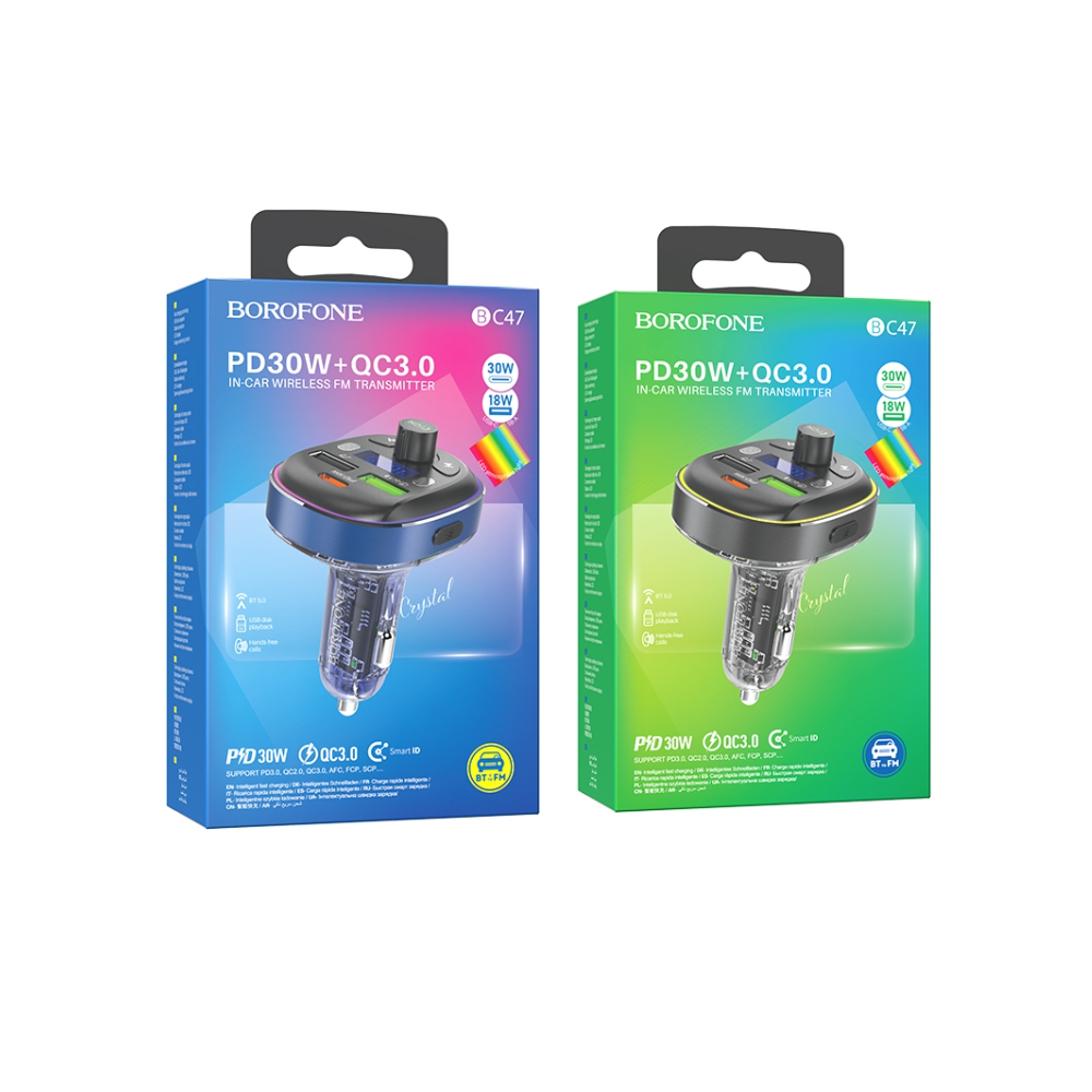 FM-трансмиттер Borofone BC47 Might, Bluetooth, QC, AFC, FCP серый