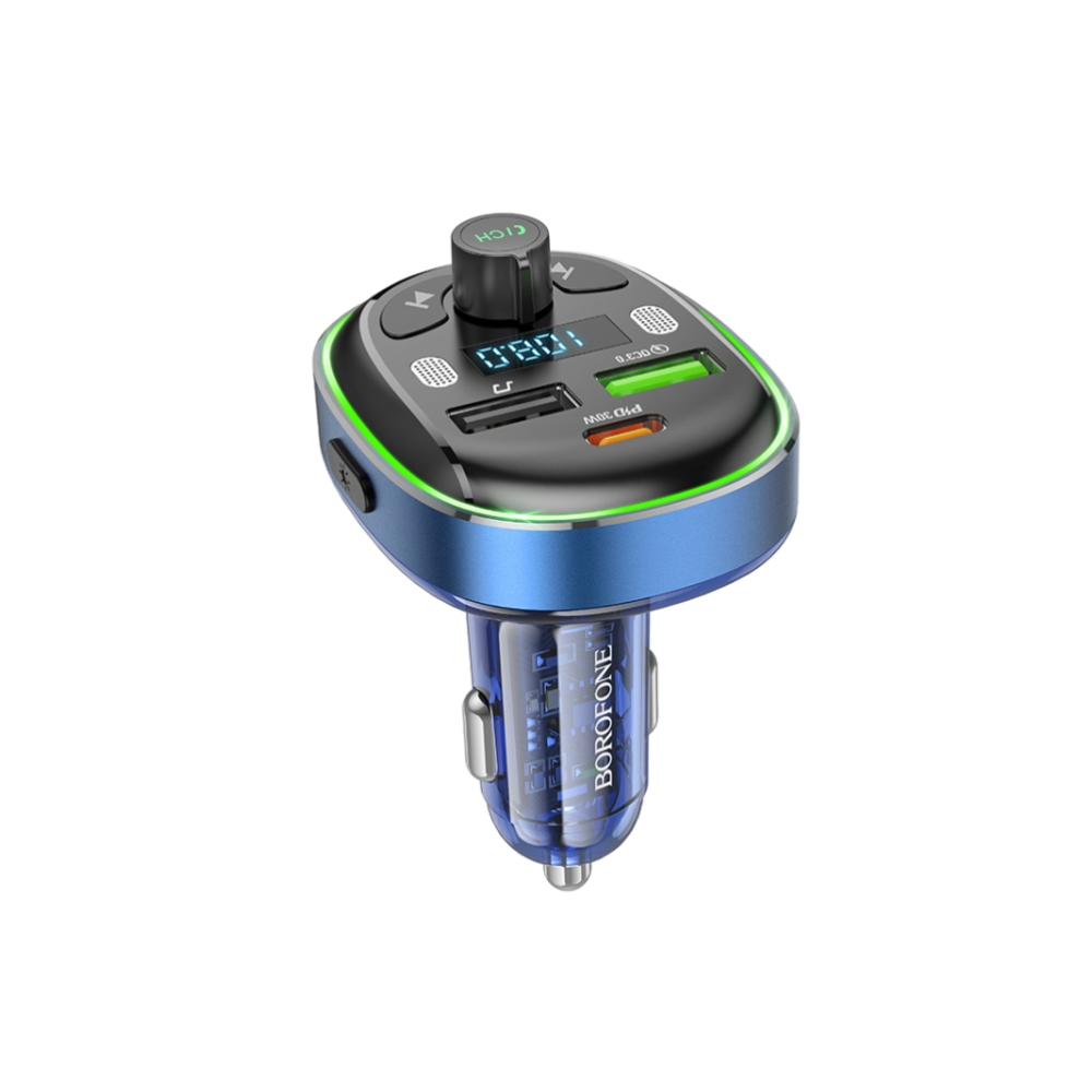 FM-трансмиттер Borofone BC47 Might, Bluetooth, QC, AFC, FCP синий, тёмный