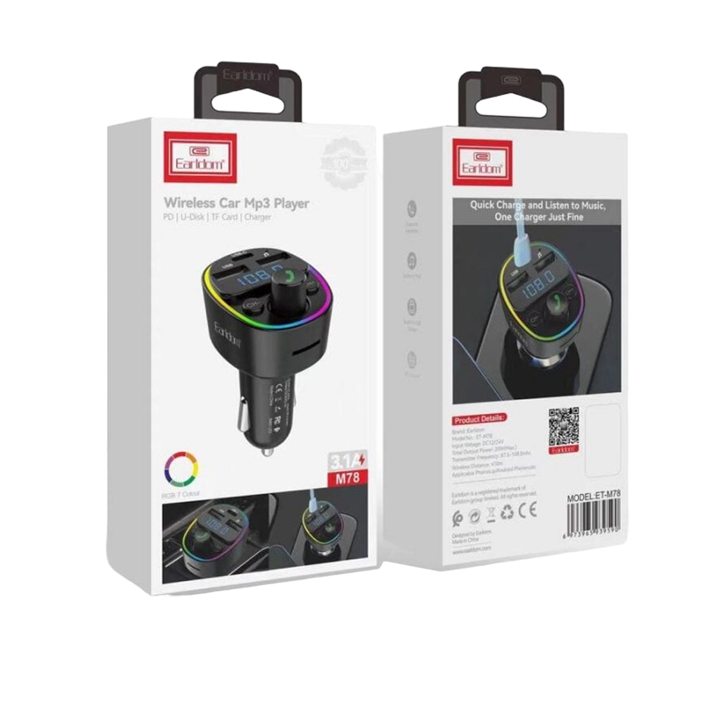 FM трансмиттер Earldom ET-M78 Bluetooth, QC3.0, чёрный