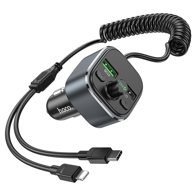 FM трансмиттер HOCO E74 Energy, Bluetooth, QC, FCP, AFC, серый