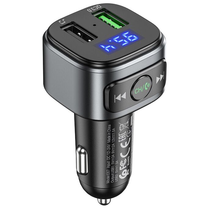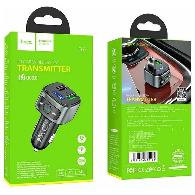 АЗУ Bluetooth FM-Трансмиттер HOCO E76 Pole PD45W, QC3.0 (черный)