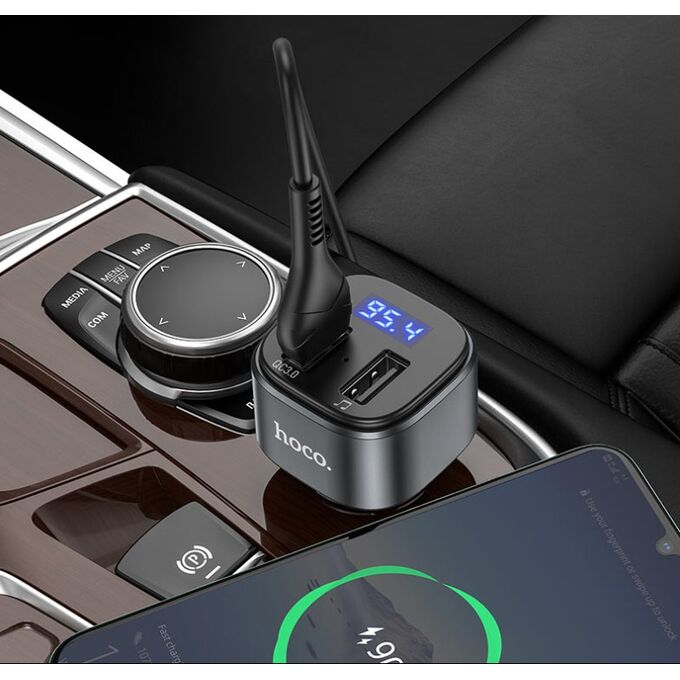 FM-трансмиттер+АЗУ 2USB 5.0A/1.5A QC3.0 Bluetooth 5.0 Hoco E67 (Black)