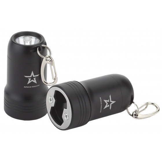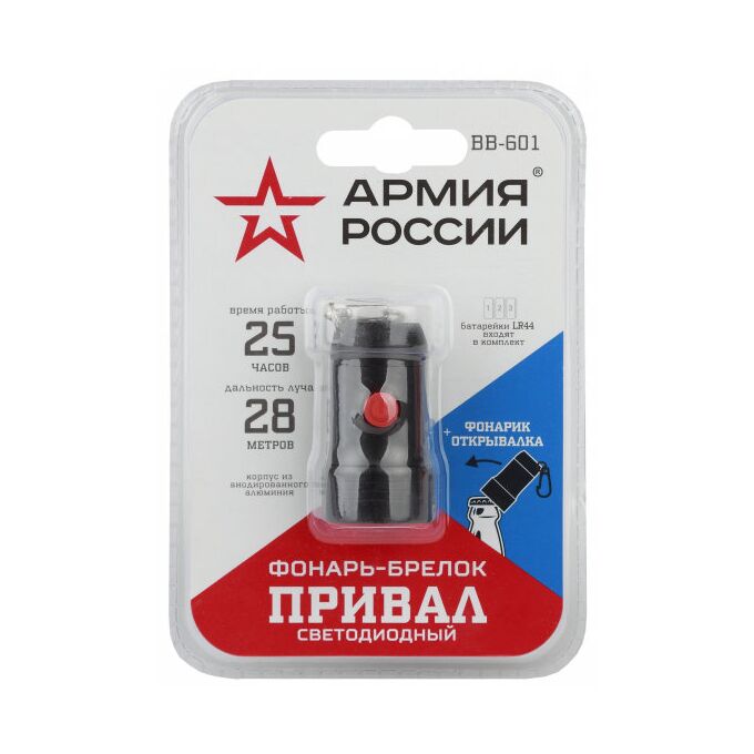ЭРА Армия России Привал - компактный светодиодный фонарь-брелок со встроенной открывалкой. Световой луч отличной дальности - 28 метров. Качественный направленный свет за счт использования сверхъярких современных светодиодов. Батарейки в комплекте.