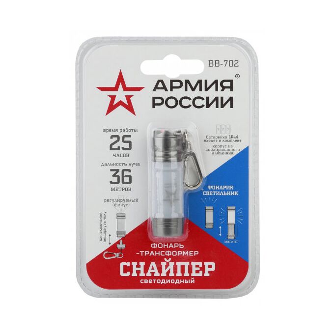 Фонари Армия России BB-702 брелок-трансформер Снайпер [фонарь+светильник, алюм, 3xLR44