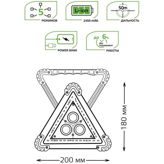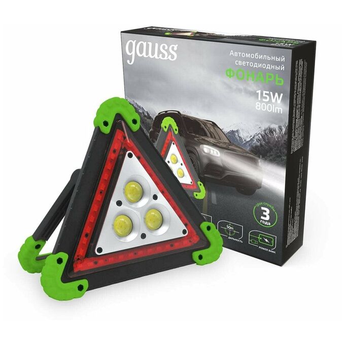 Фонарь автомобильный Gauss GFL802 зеленый/черный 15Вт лам. светодиод.