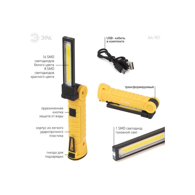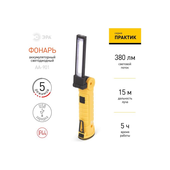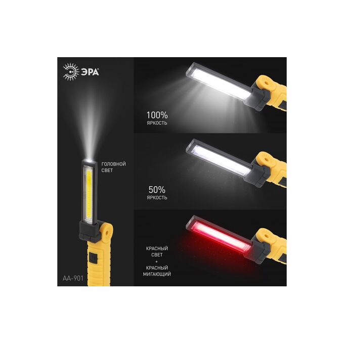 Фонарь ЭРА AA-901 Рабочие Практик (Б0054041) светодиодный многофункциональный СОВ + LED 3Вт магнит, крючок, клипса