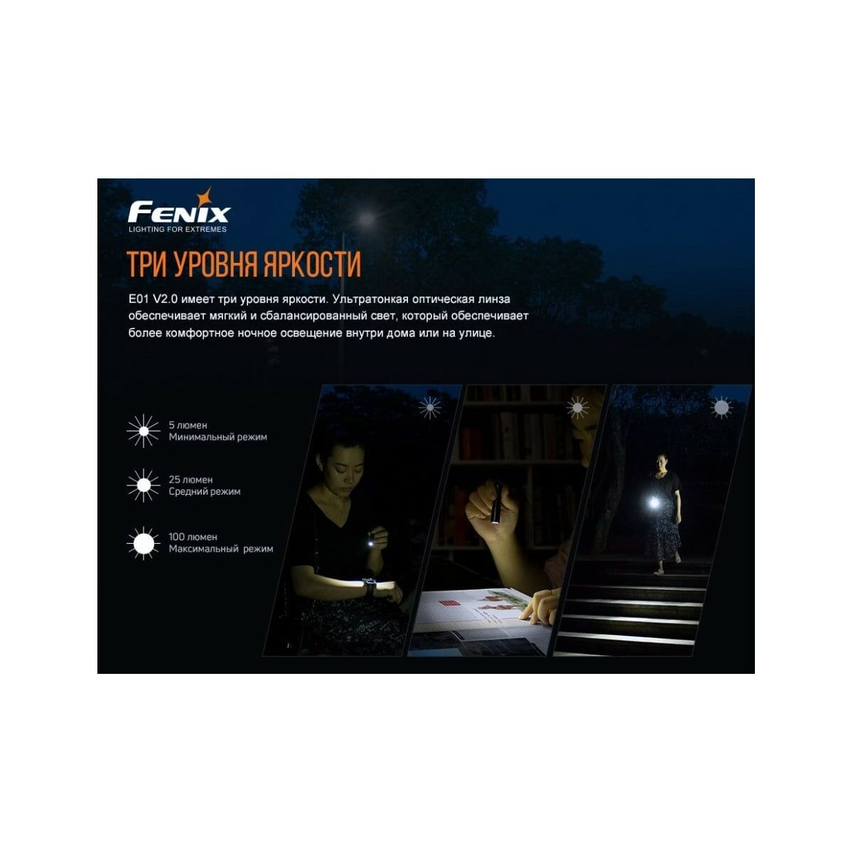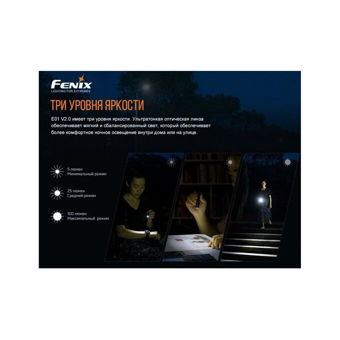 Преимущества Fenix E01 V2.0 черный e01v20bk