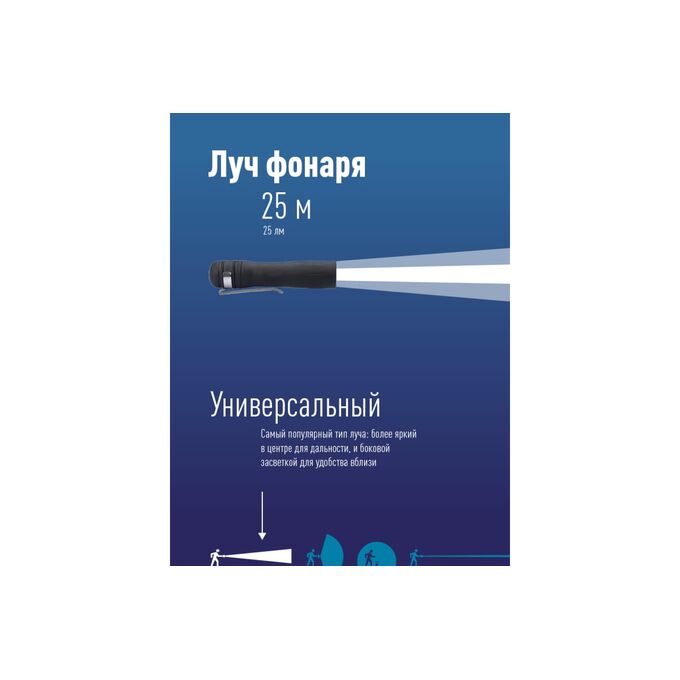 Количество режимов: 1 (луч). Луч фонаря - светит вперед, направленный свет.