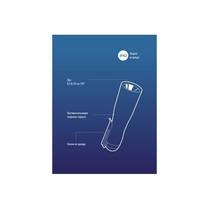 Технические характеристики КОСМОС KOC120B 0,5Вт LED/1xAA/ABS-пластик c каучуковым напылением/зажим для крепления