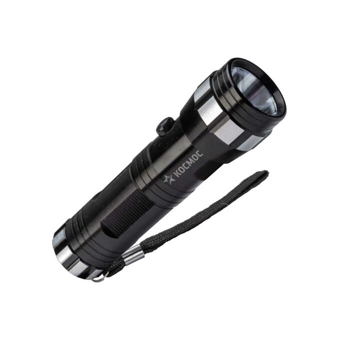 Ручной фонарь КОСМОС 1Вт LED/3xAAА/корпус алюминий/ремешок ручной, KOS108B в прочном корпусе из анодированного алюминия авиационного класса не боится ударов и падений. Кнопка расположена сверху - как на обычных фонариках. Источник питания: батарейки 3xAAA (в комплект не входят).