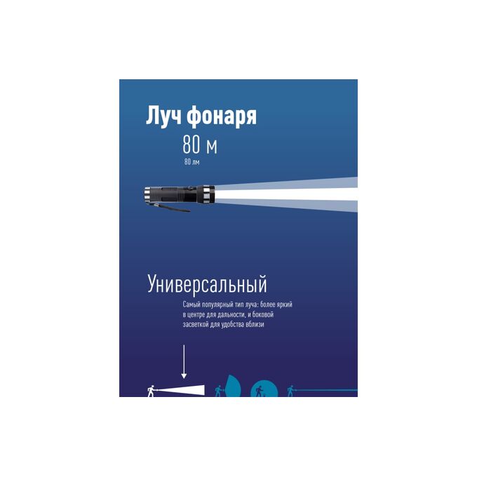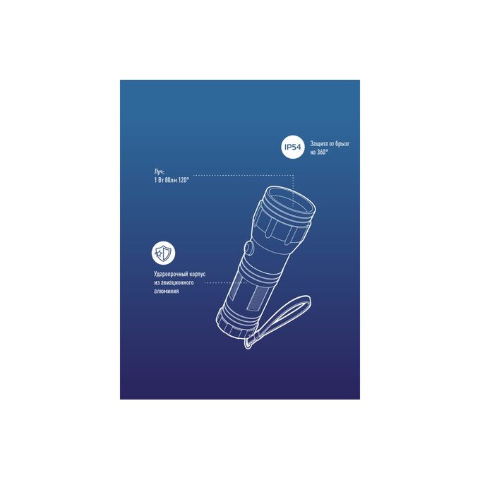 Луч фонаря светит вперед, направленный свет. Источник света: 1 Вт LED. Количество режимов: 1 (яркий).