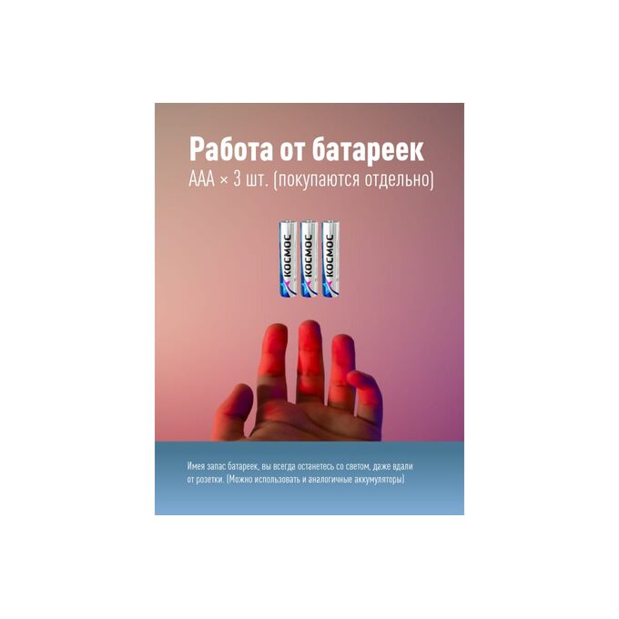 Фонарь светильник КОСМОС рабочая серия 5Вт COB+1ВтLED/кол линза/3xAAА/ABSпластик/магнит/крюк/зажим, KOS703B совмещает широкий свет (освещает пространство с одной стороны) и луч фонаря (направленный свет). Источник питания: 3xAAА (в комплект не входят). Количество режимов: 2 (яркий широкий свет - яркий луч).