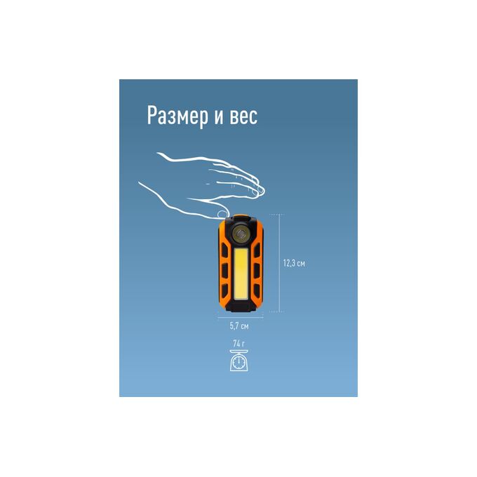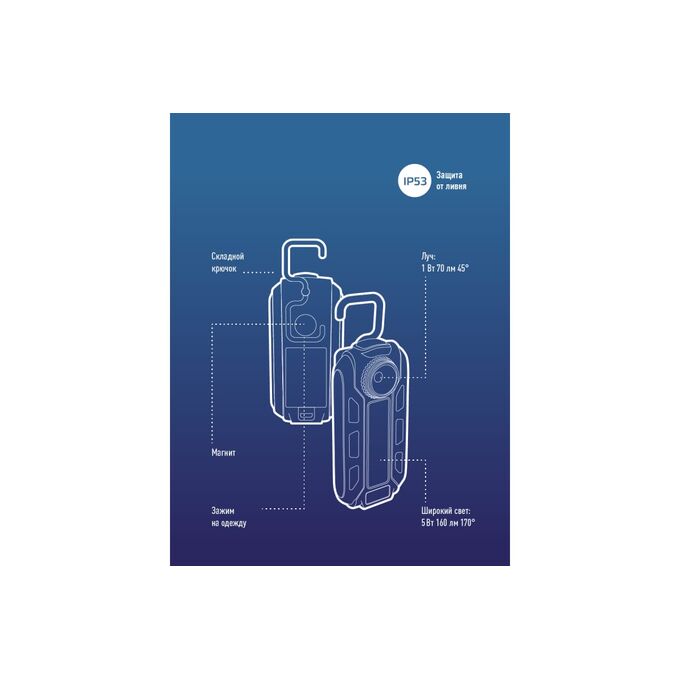 -Фонарь со складным крючком, магнитом и зажимом на корпусе.