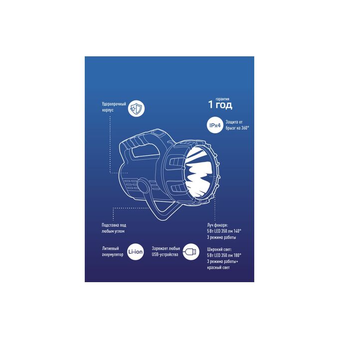 Фонарь КОСМОС Premium 5Вт направленный свет, 5Вт СОВ, литий 3600mAh, MICRO USB шнур в комплекте KOSAc8010WLith имеет умный индикатор зарядки покажет, сколько именно энергии осталось. Удобный переключатель: несмотря на 7 режимов света, фонарь легко включить и выключить длительным нажатием. Функция powerbank: подзарядка мобильных устройств. Подставка с регулируемым углом. Заряд фонаря от USB позволит использовать подзарядку даже в автомобиле или на природе от powerbank.