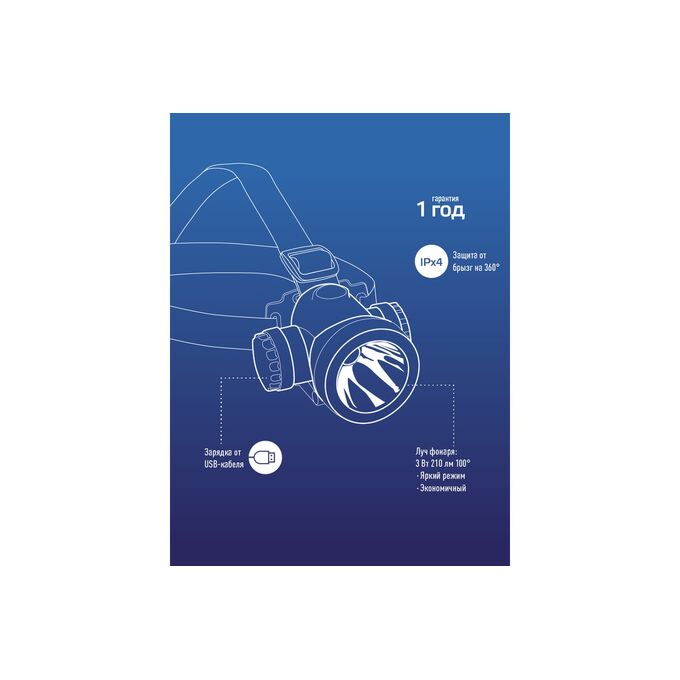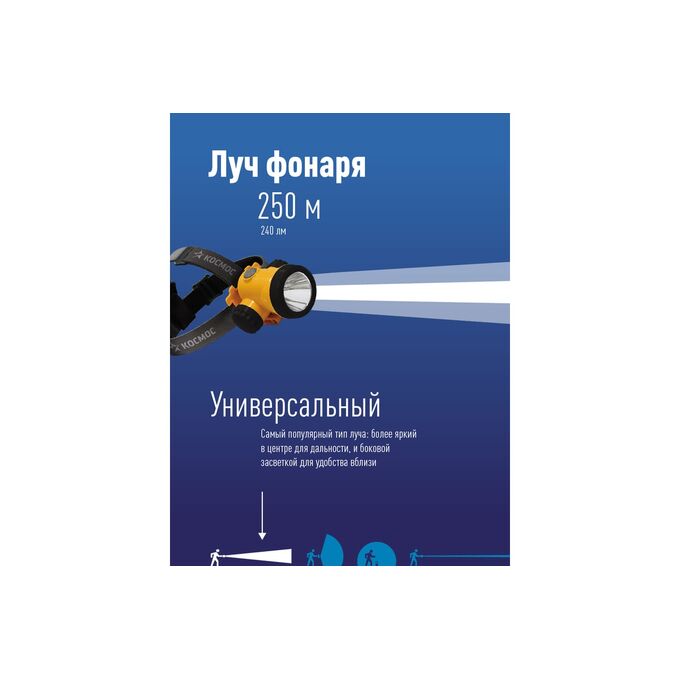 Фонарь налобный аккумуляторный КОСМОС KOCH3WLi-On