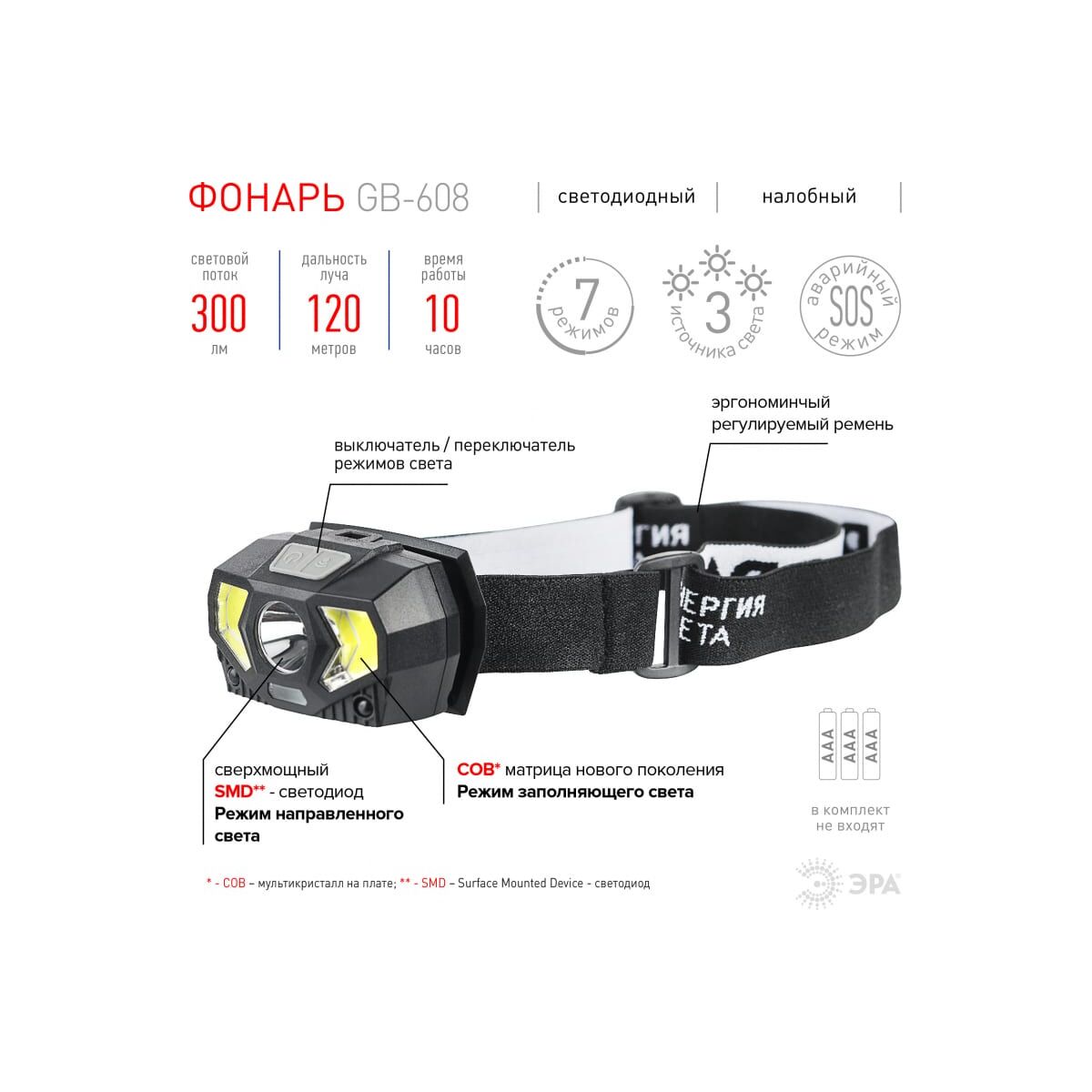 Фонарь налобный ЭРА GB-608 (Б0052319) черный